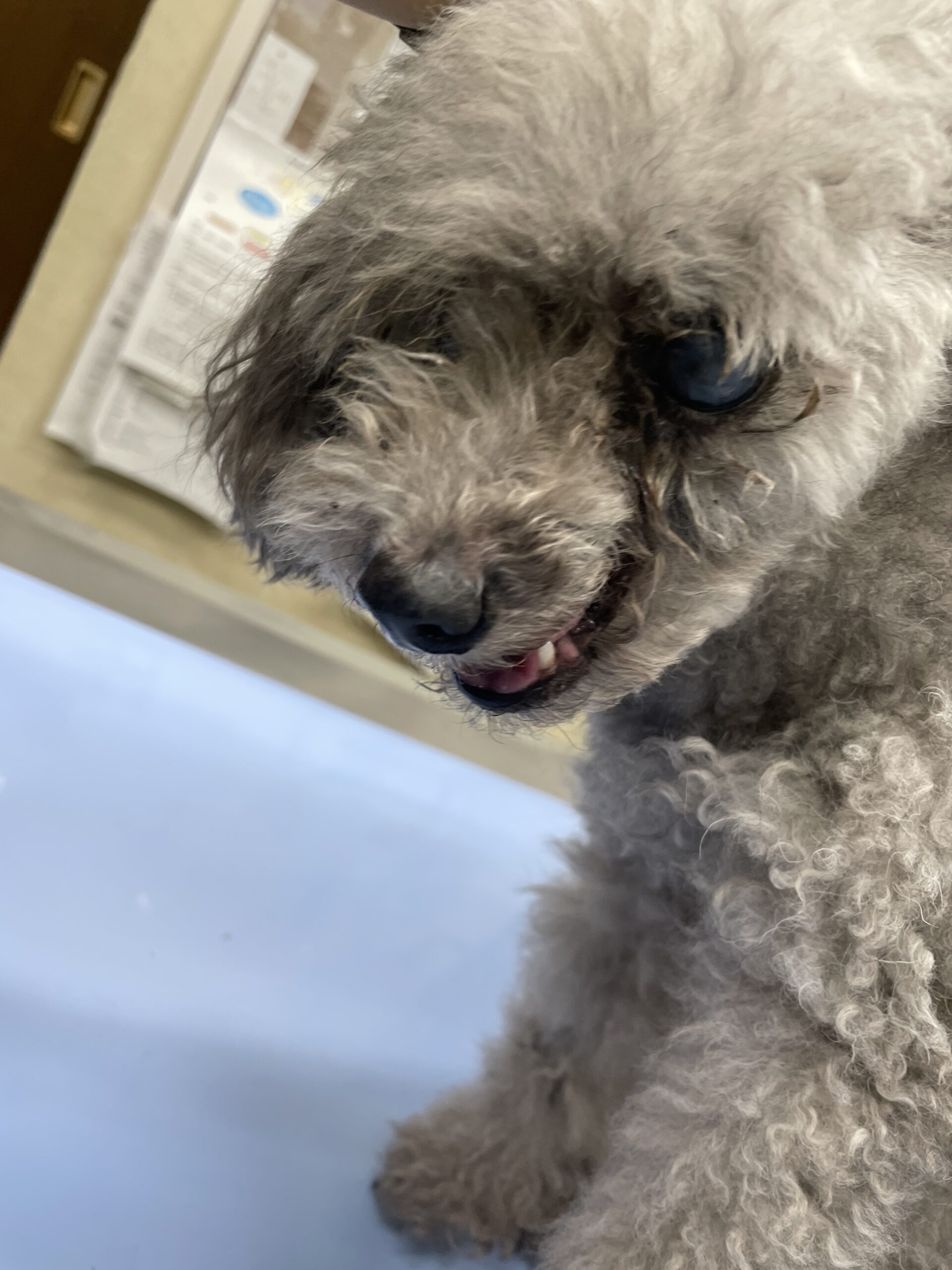 15歳のプードルさんで左上顎前臼歯あたりの歯肉から発生した黒色腫瘤を生検して病理に提出したところ、悪性黒色腫(メラノーマ)という診断となりました。
