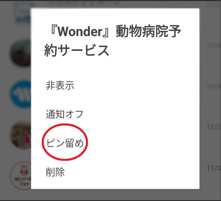 Android:トークルームを長押しし、